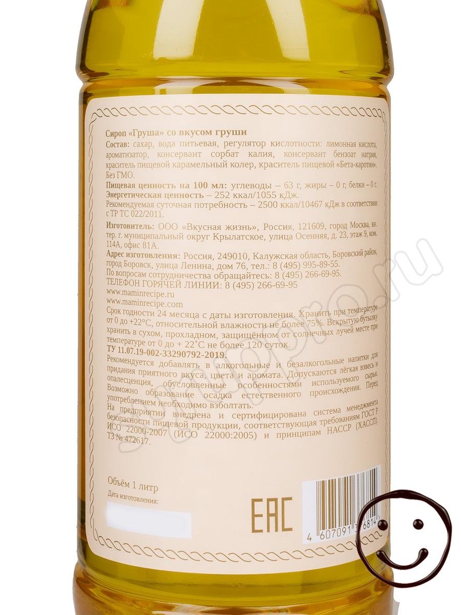 Сироп Мамин Рецепт Груша 1 л