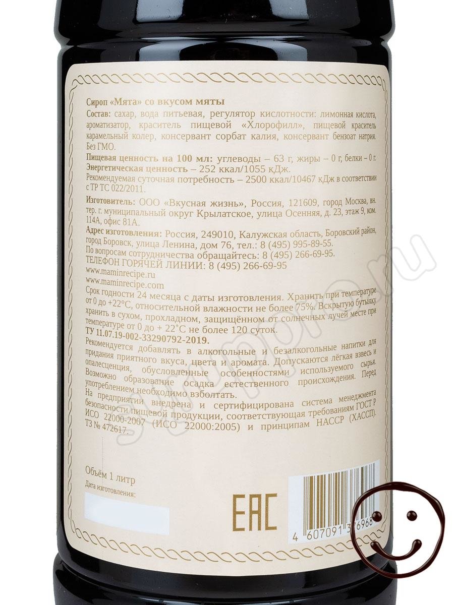 Сироп Мамин Рецепт Мята 1 л