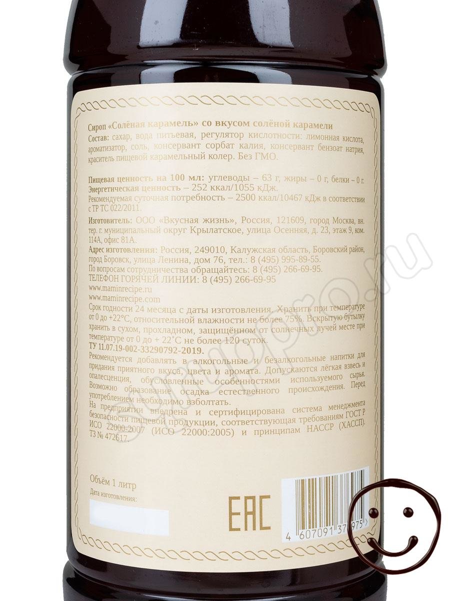 Сироп Мамин Рецепт Соленая Карамель 1 л